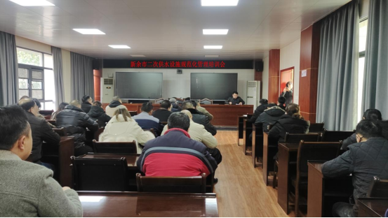為進(jìn)一步落實(shí)市委市政府關(guān)于創(chuàng)建國家衛(wèi)生城市工作的總體部署要求,切實(shí)提高我市生活飲用水管理水平,1月5日新余市水利局邀我司聯(lián)合開展了城區(qū)二次供水設(shè)施規(guī)范化管理培訓(xùn)會(huì)。此次培訓(xùn)會(huì)由市水利局二級(jí)調(diào)研員胡振南主持,我司業(yè)務(wù)部李正明與技術(shù)部伍松代表授課,參會(huì)人員有新余市內(nèi)各學(xué)校、醫(yī)院、酒店、賓館以及小區(qū)物業(yè)等負(fù)責(zé)人。