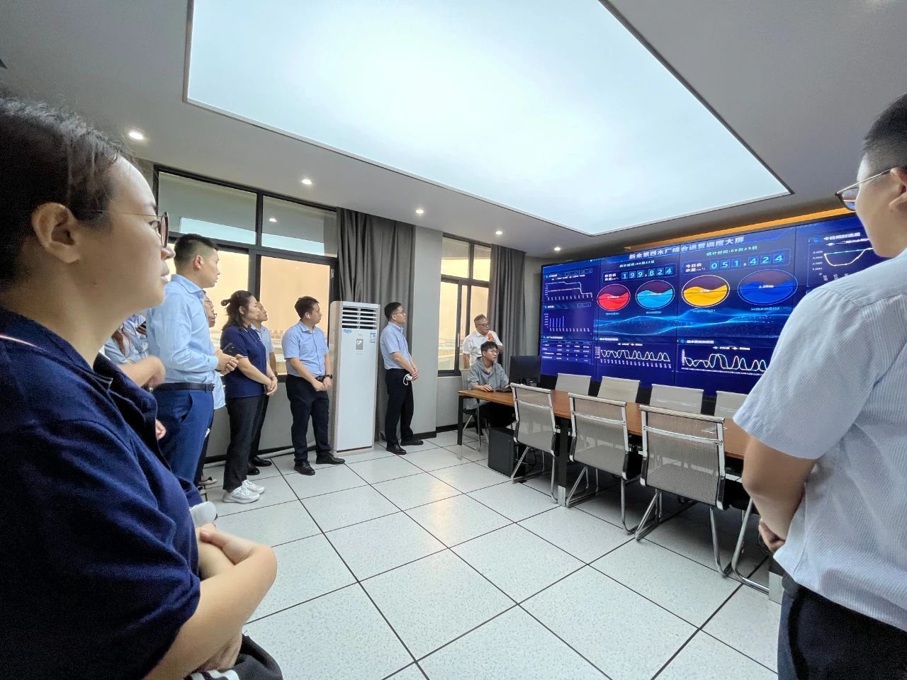 集團郭總在我司講解團的陪同下,帶領(lǐng)集團年輕干部培訓(xùn)班成員先后參觀了我司機械、電氣生產(chǎn)車間、成品庫、二次供水設(shè)備展廳、二次供水監(jiān)控管理平臺及數(shù)字化智慧水務(wù)平臺。